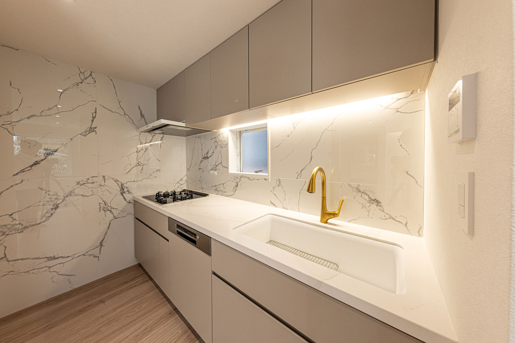 また、蛇口等の細かな設備にもこだわりと高級感が詰め込まれており、お部屋全体の雰囲気を引き締めています。
