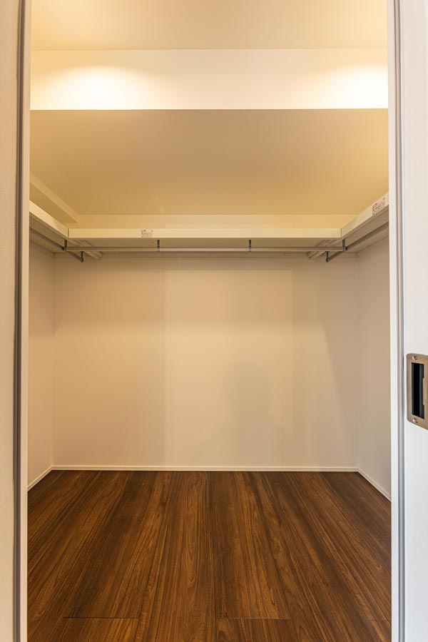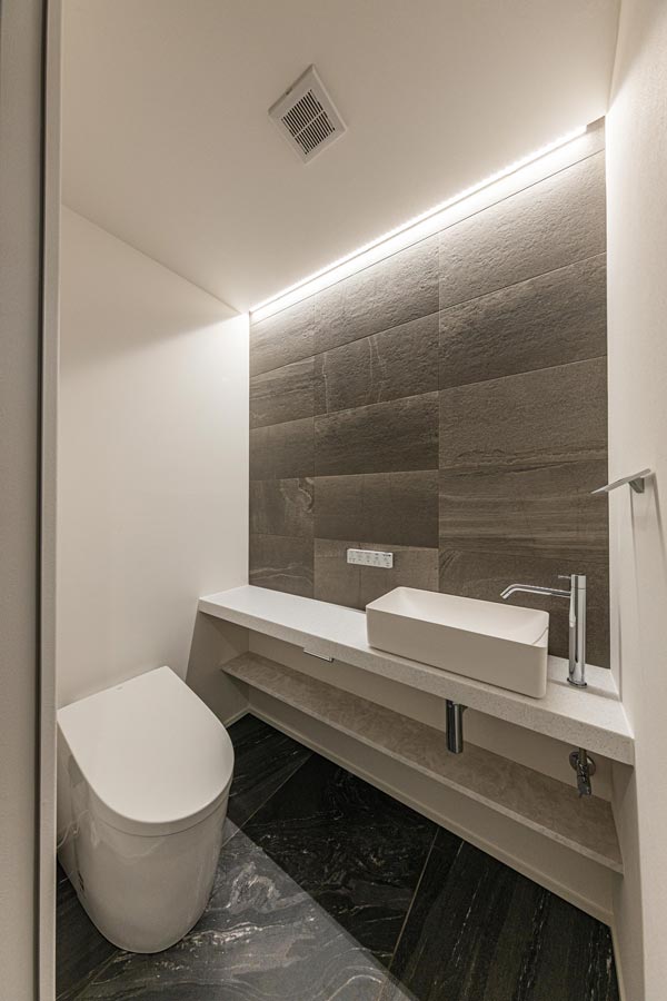 玄関からホール、水回りの床には繋がりのある大判タイルを使用して上質な統一感をプラス。