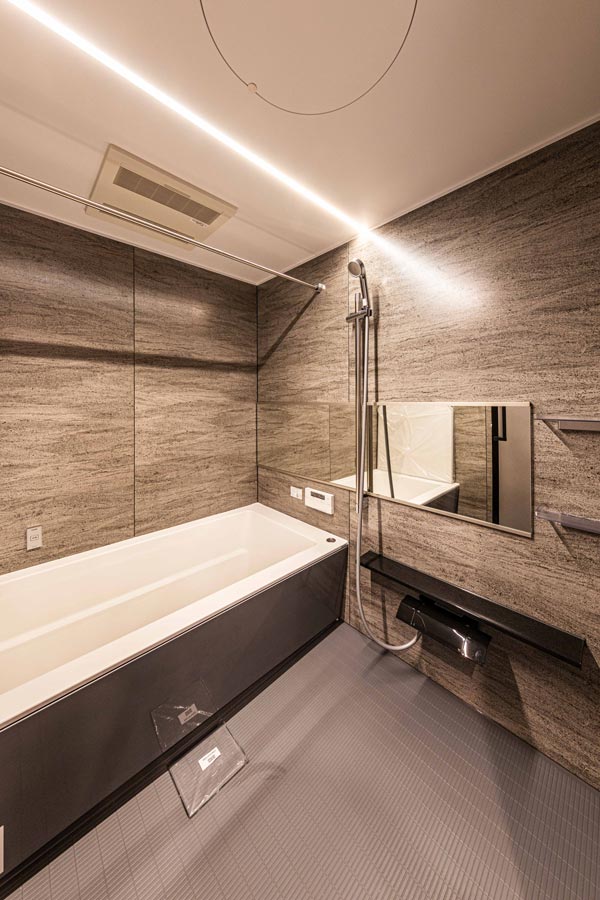 独立洗面台もまた、空間全体と調和する落ち着きあるデザイン。木目と照明が織りなす温かな雰囲気の中で、朝の身支度から夜のリラックスタイムまで快適に過ごせる空間です。