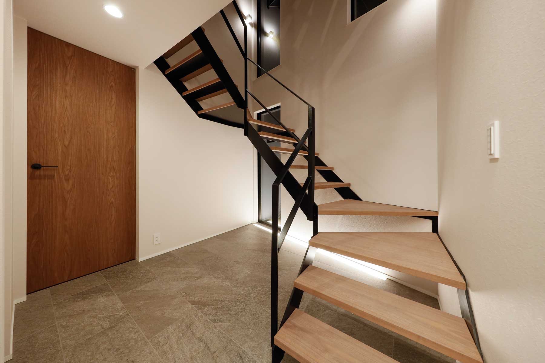 ビルトインガレージの上部には、弊社の建売ならではの独自デザインによる間接照明を配置。スタイリッシュな印象とともに、暮らしの質を高める空間づくりが施されています。