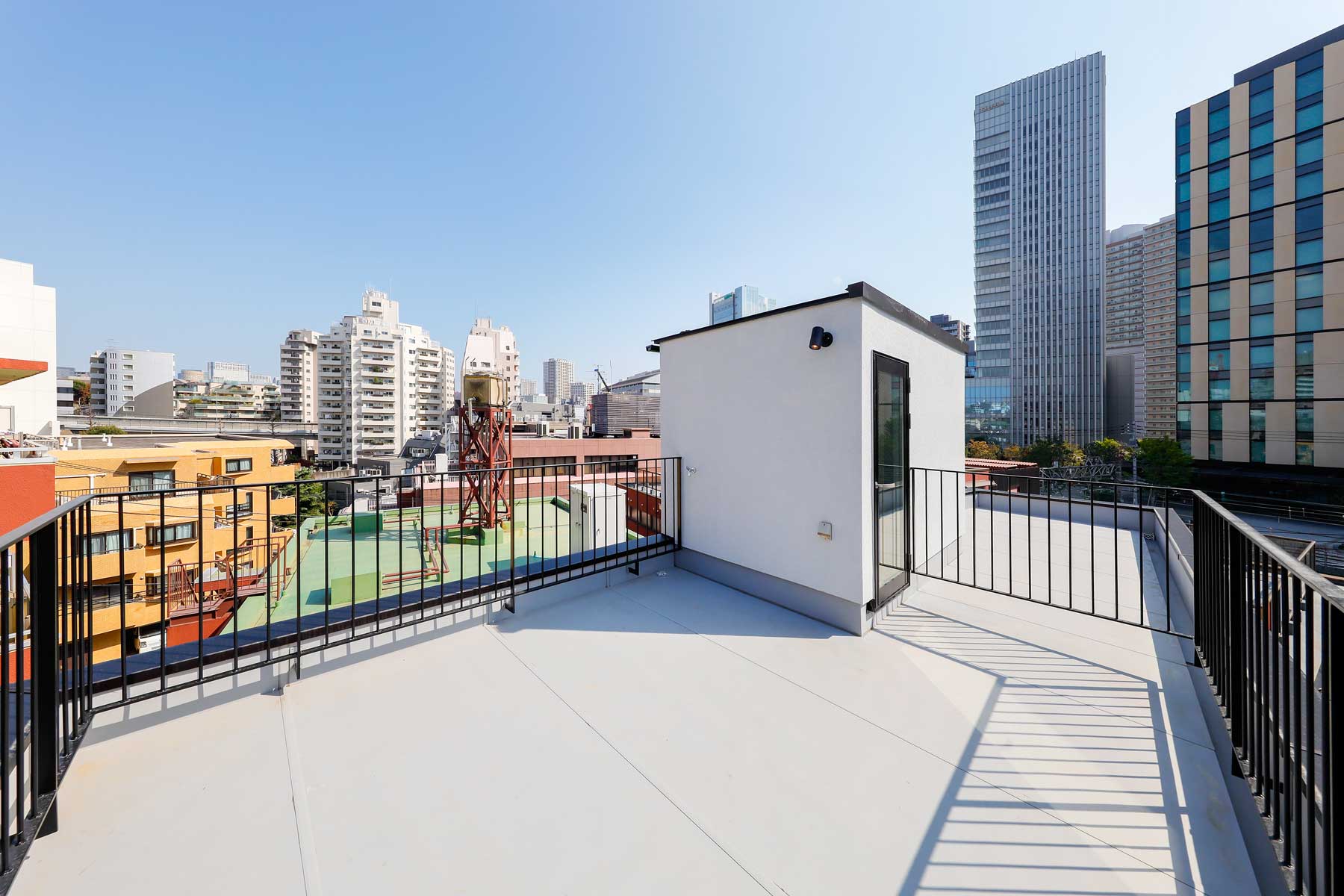 3階と屋上には大空間のルーフバルコニーを設け、パラペット部分にも間接照明を配置。ライトアップされた夜はヨーロッパのカフェテラスのような雰囲気に包まれます。全バルコニーには金属防水を採用し、永年メンテナンス不要かつ高い耐熱性を備えているため、屋上ではBBQや子供用プールなど、都心にいながら快適なアウトドア空間を楽しめます。