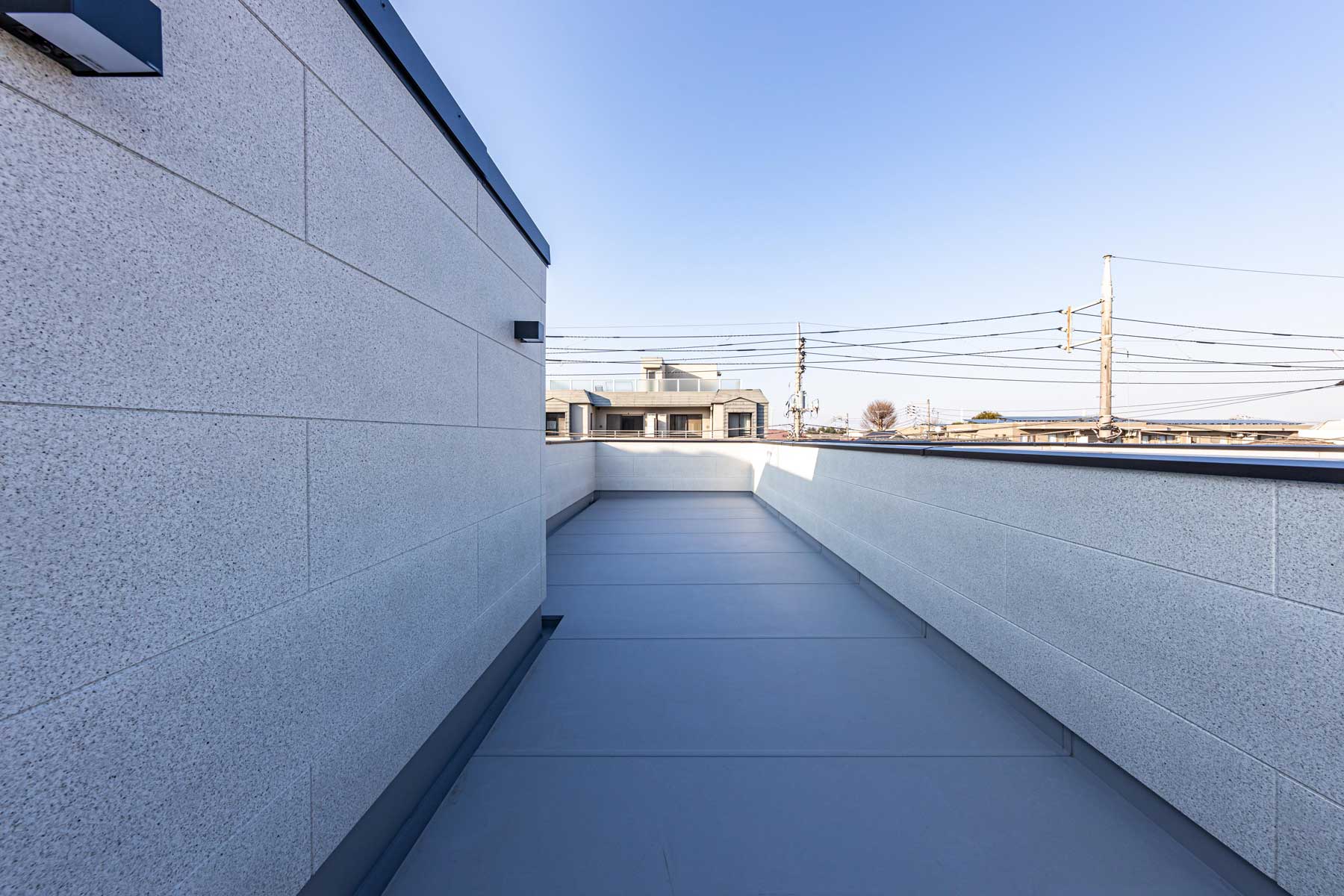 外観は、車庫奥にあしらわれた上質なタイルと木目調の天井が温かみを添え、埋め込み式LED照明や足元のスポットライトが昼夜で異なる表情を演出。草木の美しさを際立たせるこだわりのデザインです。